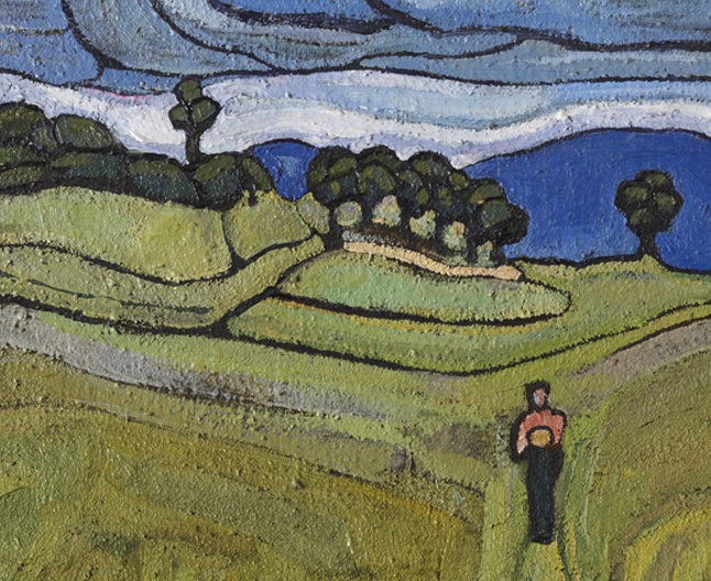 Il trentino Umberto Moggioli è presente con due grandi tele spalancate nella gradualità fatata degli azzurri sulla laguna di Torcello, l’altra sui campi vinicoli dell’isola di Burano. Anche Tullio Garbari di Pergine Valsugana si presenta con due tele ispirate ai sintetisti francesi e a una esigenza di primitivismo: due paesaggi simbolici a volute a cerchio in una ondulata musicalità campestre. Luigi Bonazza di Arco si inserisce con un acquarello neo divisionista dalla pennellata picchiettata, stemperata dalla melodia dei pittori veneziani.
