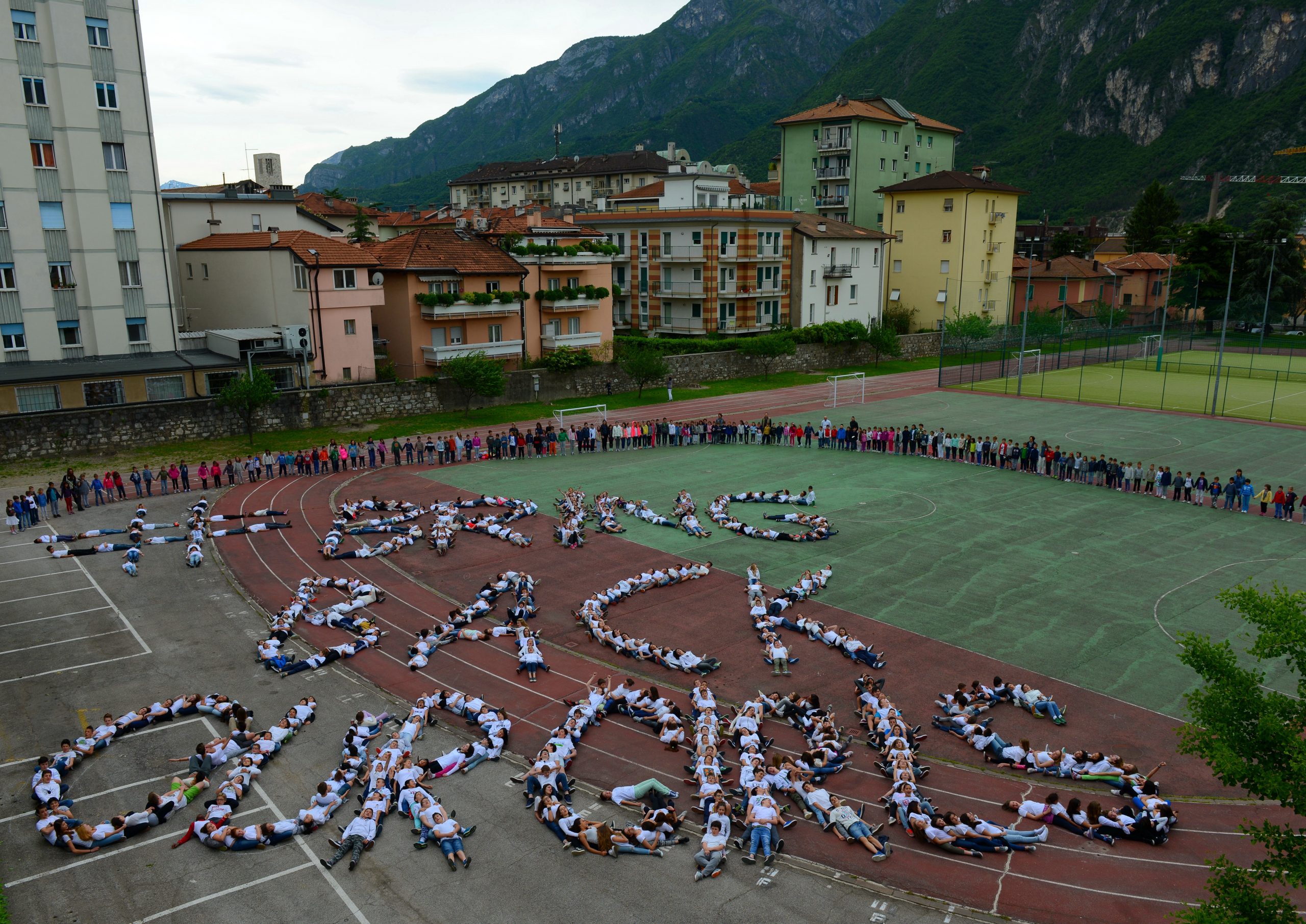 Gli alunni di tutte le classi delle medie Arcivescovile hanno realizzato venerdì scorso un'enorme scritta #bringbackourgirls, l'appello lanciato su Twitter per la liberazione delle studentesse rapite in Nigeria dal gruppo terroristico Boko Haram. Il gesto ha voluto esprimere, ha sottolineato il dirigente dell'Istituto, don Bruno Tomasi, che la parola vale più della violenza e che insieme le cose si possono cambiare.