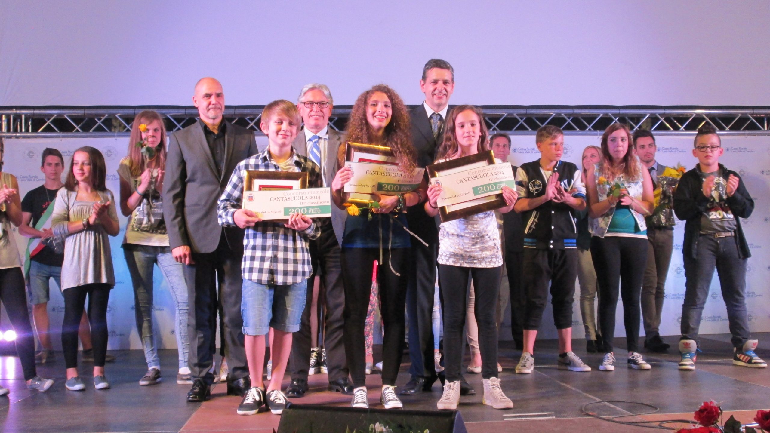 Per scaldare l'attesa e iniziare musicalmente bene la serata ci hanno pensato il Coro e l'Orchestra dell'Istituto Comprensivo diretti rispettivamente da Ludovico Conci e da Marco Bazzoli. Poi la gara vera e propria che ha visto trionfare Eleonora Uber con la canzone di Whiney Houston "I am nothing", davanti a Timossena Milenkovic che ha interpretato “Nella Fantasia” di Ennio Moricone, Damiano Tomazzolli con la canzone di Giorgia “E poi”.