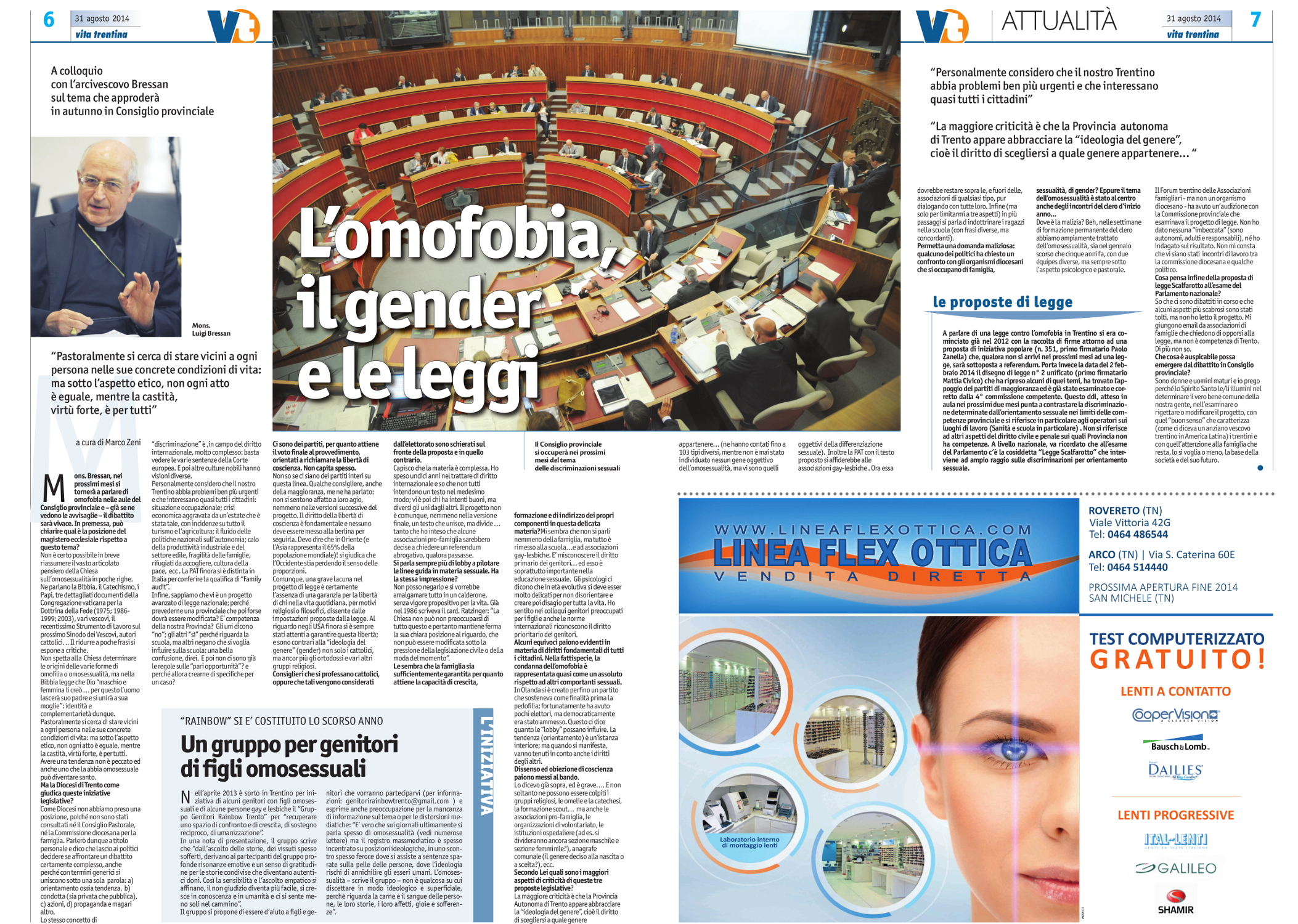 E’ in calendario per martedì 16 settembre in Consiglio provinciale il disegno di legge antiomofobia che – dopo l’intervista del vescovo Bressan a Vita Trentina – ha fatto discutere. Ecco una nota del Forum provinciale che raccoglie oltre 40 sigle di associazioni familiari