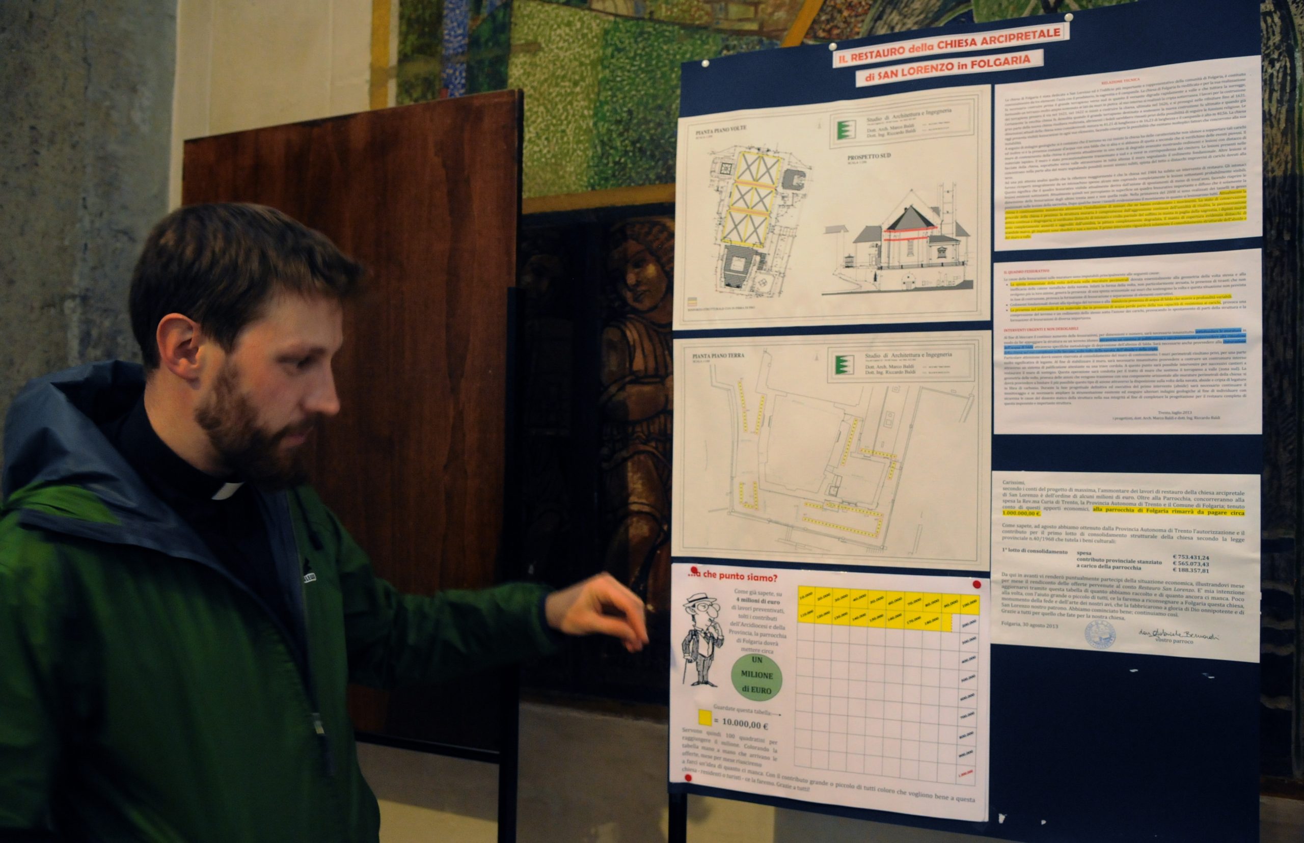 Importante per il giovane prete, ordinato sacerdote a 31 anni nel 2009, arrivato nel centro folgaretano dopo un biennio come collaboratore parrocchiale a Cles, era sì la lettura storica, ma soprattutto individuare i possibili ripieghi per portare la chiesa in sicurezza. D'estate trabocca di fedeli. Nella stagione morta la messa feriale è celebrata in una cappella della canonica.