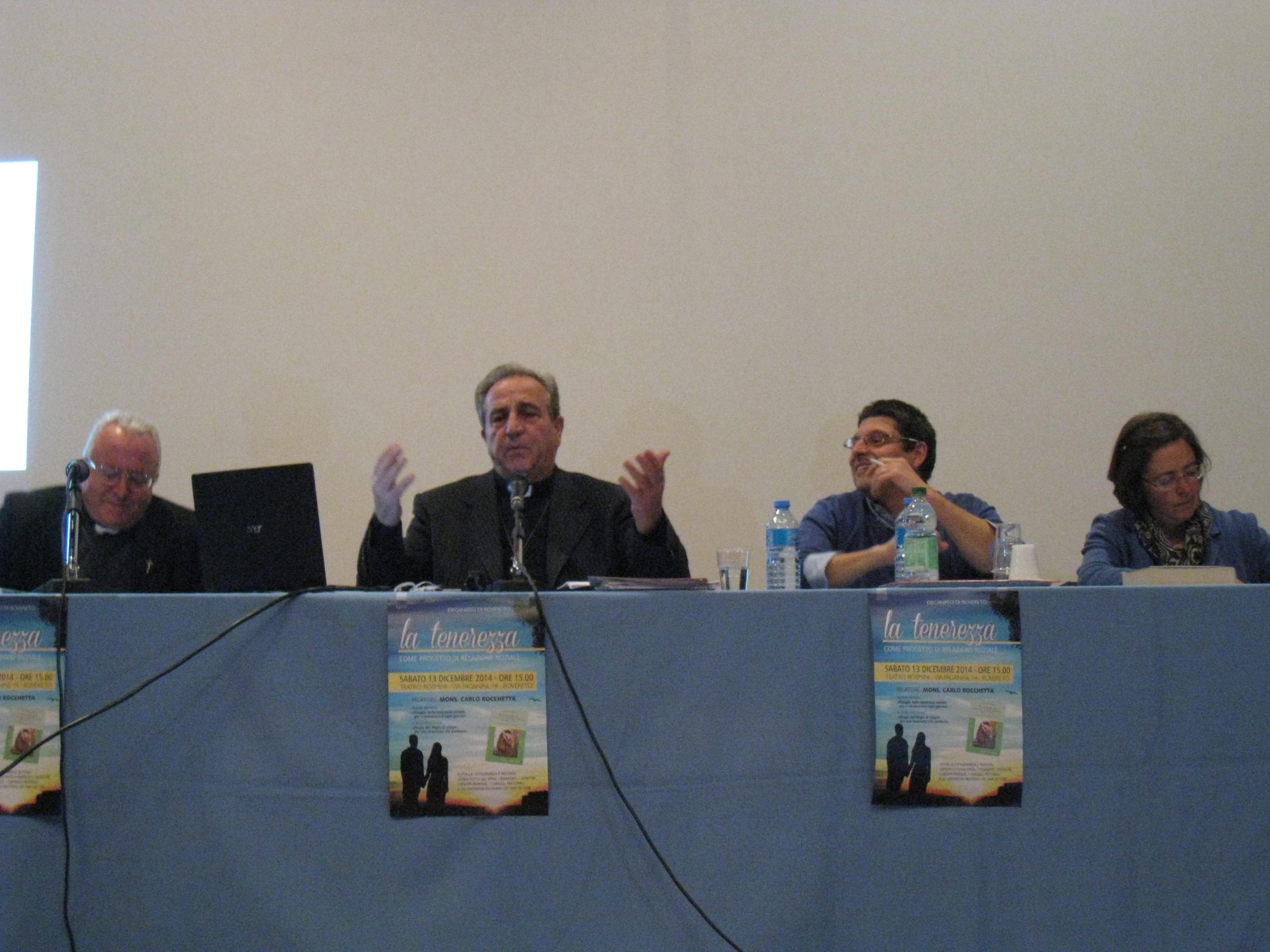 Per don Carlo, la tenerezza ha anzitutto una dimensione verticale, “sentirsi nel grembo di Dio”, e poi orizzontale verso il prossimo (l'immagine della croce). Ma “poiché la grazia presuppone la natura”, la coppia deve avere il coraggio di guardare in faccia la realtà e farsi aiutare per maturare prima psicologicamente. La fede poi, secondo il relatore, è un “valore aggiunto” che può far raggiungere alla coppia un alto livello di amore. “Chi non crede cercherà di vivere la tenerezza naturale, finché ci riesce, anche se non è facile”, ha aggiunto don Carlo rispondendo ad una domanda del pubblico.