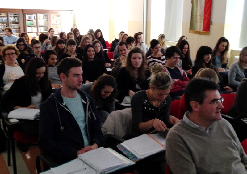 Mpaliza ha incontrato gli studenti degli istituti superiori e delle scuole medie. All’Istituto “Filzi”, introdotto dal giornalista Raffaele Crocco, ha illustrato agli studenti perché sta marciando per la pace nella Repubblica democratica del Congo. La parte orientale, ha spiegato, è la zona più ricca in assoluto di minerali e risorse. Ma pur ricco di oro, diamanti e coltan, il Congo è tra i Paesi più poveri della terra. Il coltan, che poteva essere una benedizione per i congolesi, è diventato la più grande delle maledizioni. Sono molte le multinazionali che si avvantaggiano di una situazione politica destabilizzata e corrotta, con i clan locali e guerriglieri provenienti anche dai Paesi vicini che lottano per il controllo delle miniere.