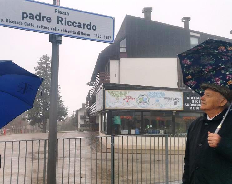 Nella toponomastica urbana di Trento è denominata “Piazza padre Riccardo” per distinguerla da un’omonimia viaria esistente nel sobborgo cittadino di Gardolo. La cerimonia di scopertura della targa, lunedì 27 aprile, alla presenza della sorella e dei due fratelli di fra’ Riccardo, dei confratelli del suo ordine religioso e di alcuni “bondoneri” è stata preceduta da una liturgia concelebrata dal salesiano don Claudio Bolla, reggente della chiesetta affacciata sulla piazza a 1.650 metri di altitudine, e dai cappuccini Feliciano Giovannini e Paolino Paoli.