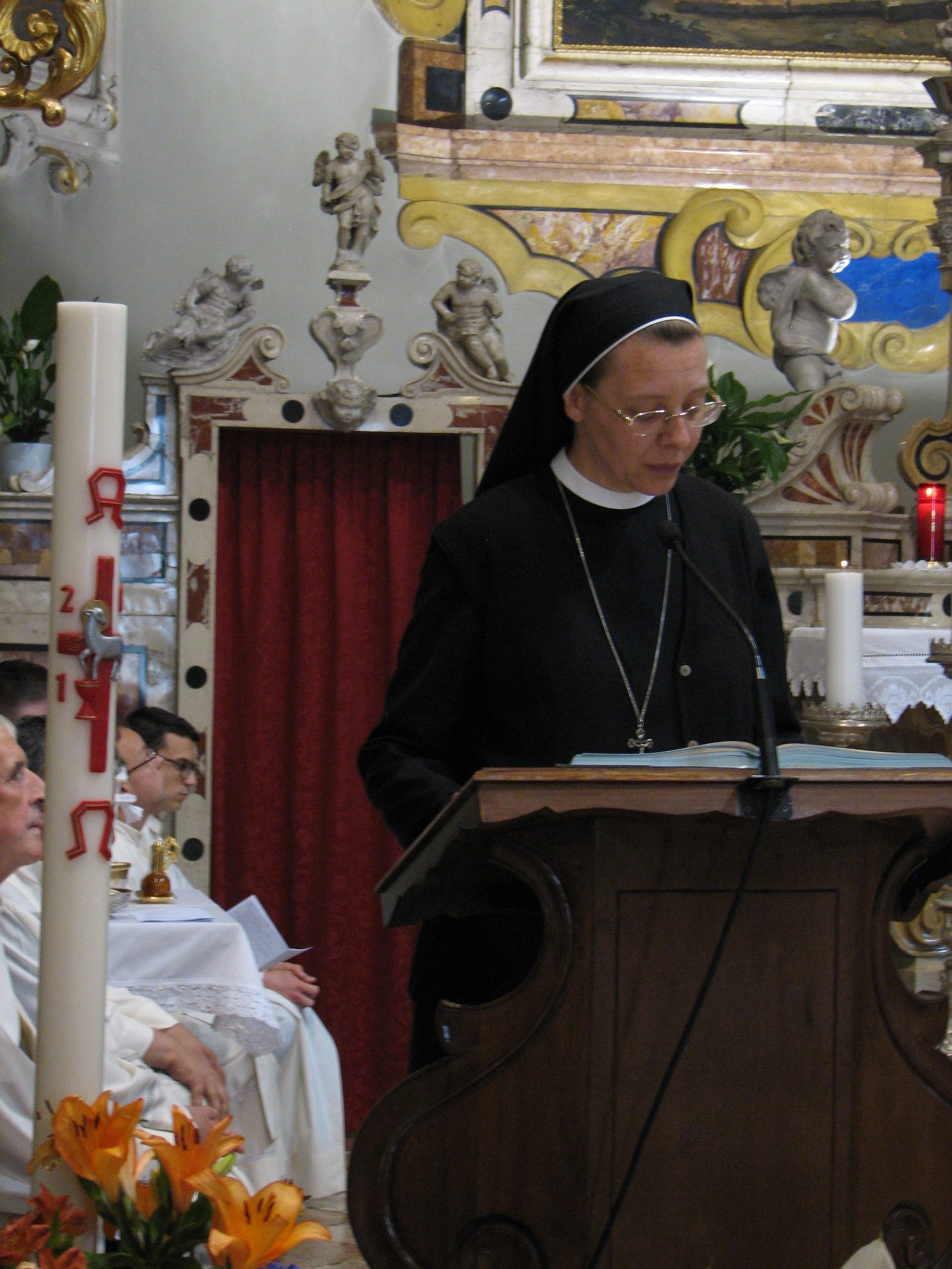 Si è tenuto venerdì scorso – com'è ormai tradizione ai primi di giugno a Montagnaga di Pinè – il ritiro per i preti trentini alla presenza dell'Arcivescovo e del vicario generale. Quest'anno – in sintonia anche con l'Anno della Vita Consacrata – la meditazione è stata affidata ad una religiosa trentina, la venturina suor Chiara Curzel (nella foto di Claudia Dorigoni), che dalla sua competenza in patristica (è docente presso lo Stat di Trento) ha tratto riflessioni acute e stimolanti.