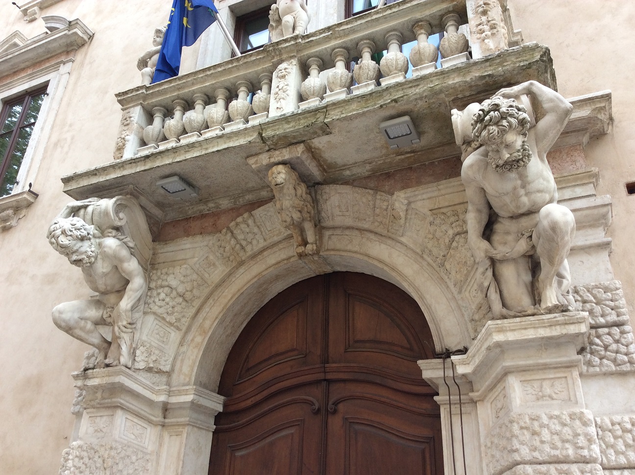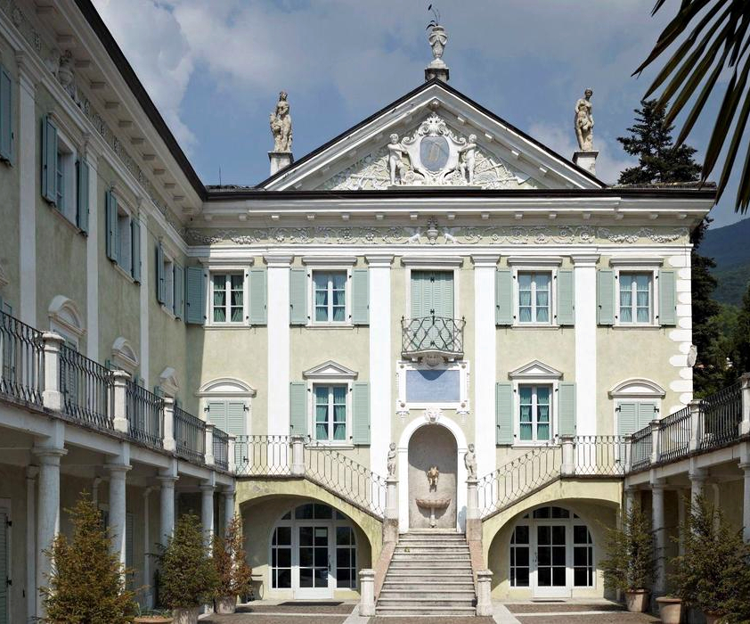 Già sede del Museo Tridentino di Scienze Naturali, lo è ora del Rettorato dell’Università. II portale con massicci telamoni reggenti la balconata sopra alla quale si trova il gruppo dei puttini reggistemma è opera, dei primi del Settecento, di Cristoforo Benedetti da Castione “junior”.