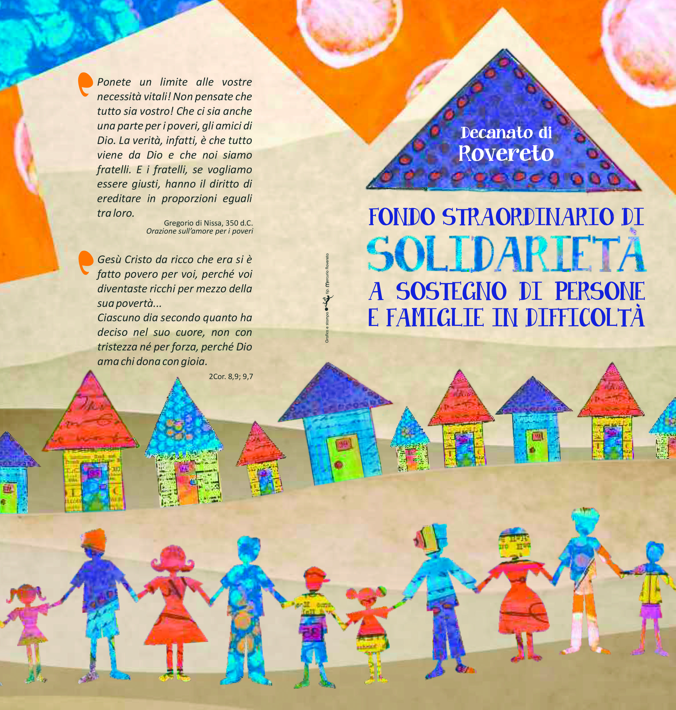 La proposta di istituire un Fondo straordinario di solidarietà a sostegno delle persone e famiglie in difficoltà economica, è stata approvata dal Consiglio Decanale di Rovereto nel gennaio 2013. Obiettivi dell’iniziativa (in collaborazione con la Caritas decanale e il Centro di ascolto e di solidarietà) sono anche quello di far crescere nelle comunità il senso della solidarietà e di educare a una maggiore sobrietà nello stile di vita delle famiglie.