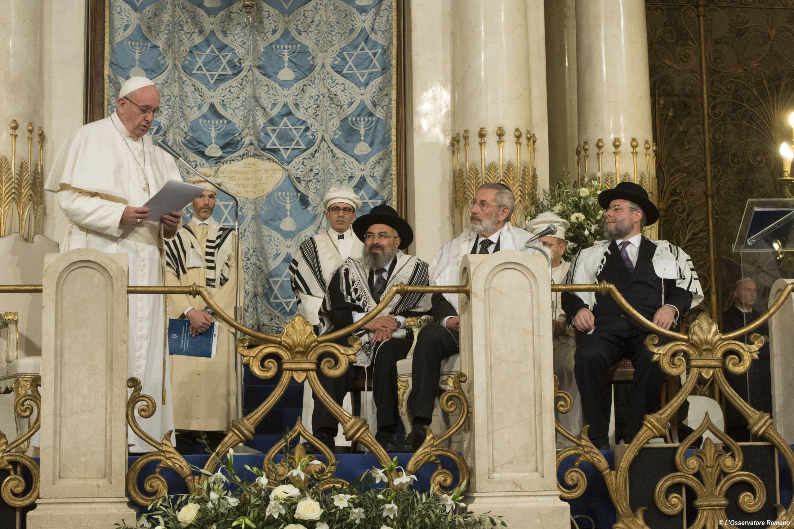 “Voi siete i nostri fratelli e le nostre sorelle maggiori nella fede. Tutti quanti – ha detto il Papa – apparteniamo ad un’unica famiglia, la famiglia di Dio, il quale ci accompagna e ci protegge come suo popolo. Insieme, come ebrei e come cattolici, siamo chiamati ad assumerci le nostre responsabilità per questa città, apportando il nostro contributo, anzitutto spirituale, e favorendo la risoluzione dei diversi problemi attuali”.
