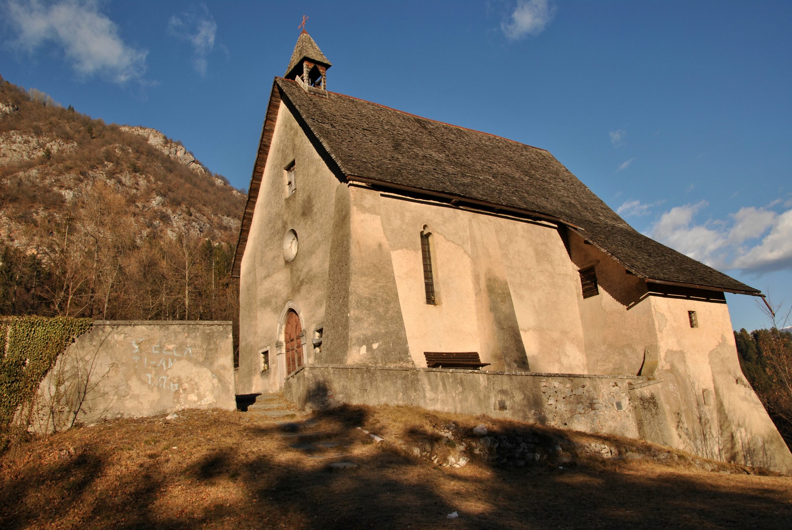 La data dell’origine della chiesa non è nota; è citata per la prima volta in un documento del 1437. Nel 1484 il vescovo di Trento Joannes Hinderbach ordinò ai Comuni di metterla in sicurezza e di ristrutturarla, perché stava cadendo in rovina. Durante l’epidemia di colera del 1836 – 1855, venne utilizzata come lazzaretto per i malati contagiosi. Conserva ancora affreschi originali e caratteri architettonici gotici.