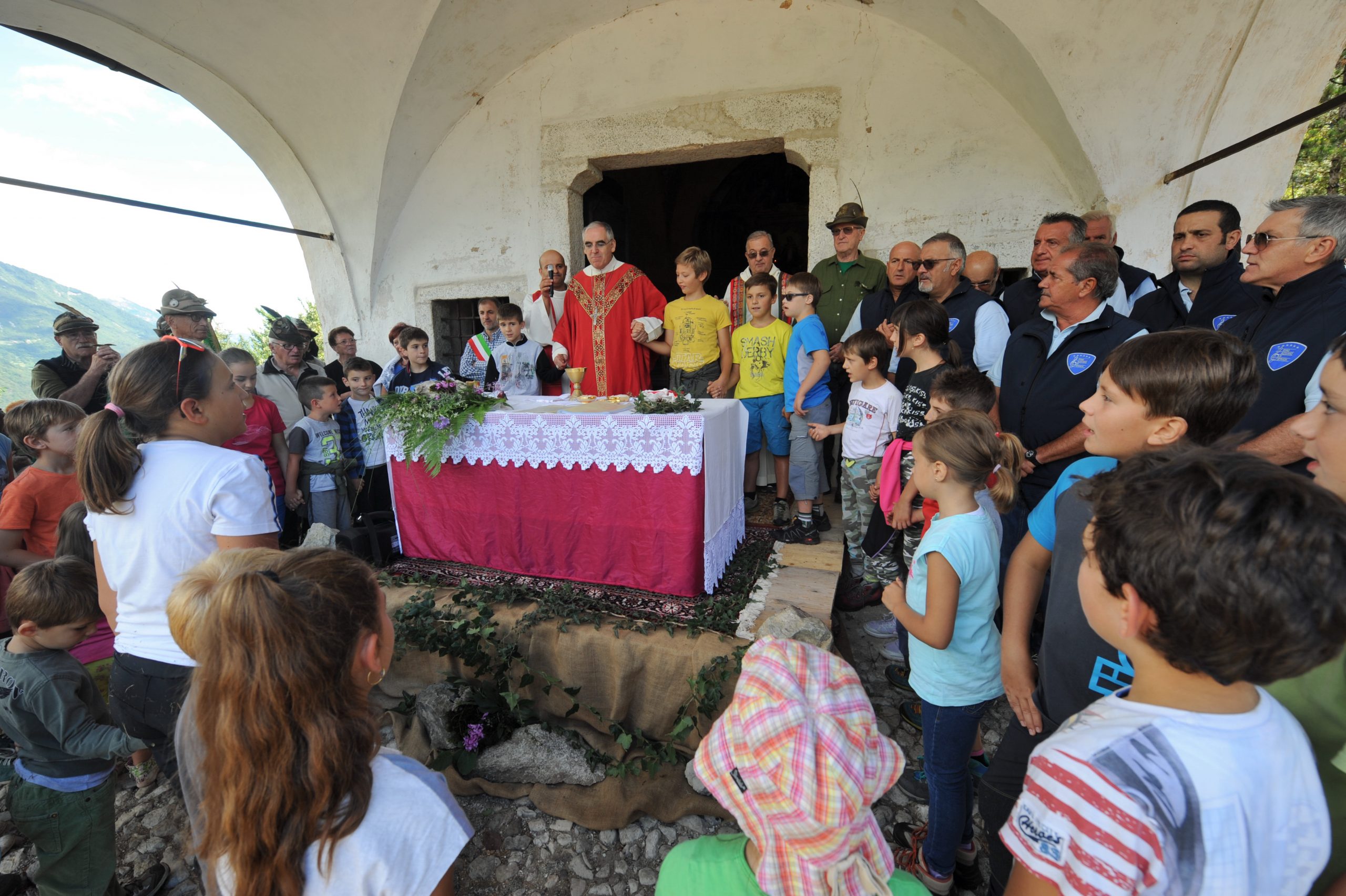Il vescovo Tisi il 10 agosto sul colle sopra Condino per la Messa della comunità giudicariese, commossa per la scomparsa pochi giorni prima dei ragazzi Fabio e Federico in val Daone