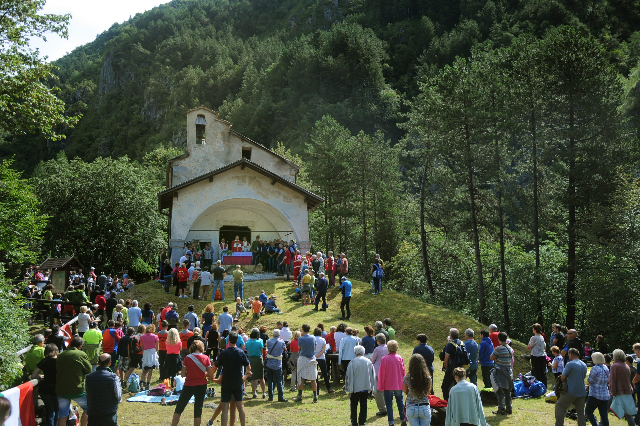 Il silenzio suonato gli alpini, ha spiegato il vescovo, richiama tutti, nell’epoca delle tante parole che alla fine non fanno che confondere, a curare spazi di interiorità; il loro essere presenti, sempre, con generosità e prontezza a mettersi a disposizione degli altri ci ricorda invece come occorra che ognuno sia attento ai bisogni degli altri. Il fatto che un luogo, come quello della chiesetta di S. Lorenzo, per quanto amato e curato dagli alpini, prenda vita in particolare quando frequentato dalla comunità, sottolinea che questa è fatta di persone che si prendono cura le une delle altre. E questo succede, ha sottolineato mons. Tisi, quando vi sono tante associazioni di volontariato, come quelle presenti: solo così, in una società in cui i media tendono a passare messaggi frustranti, le persone possono ritrovare la fiducia necessaria per volere andare avanti anche nei momenti di grande difficoltà.