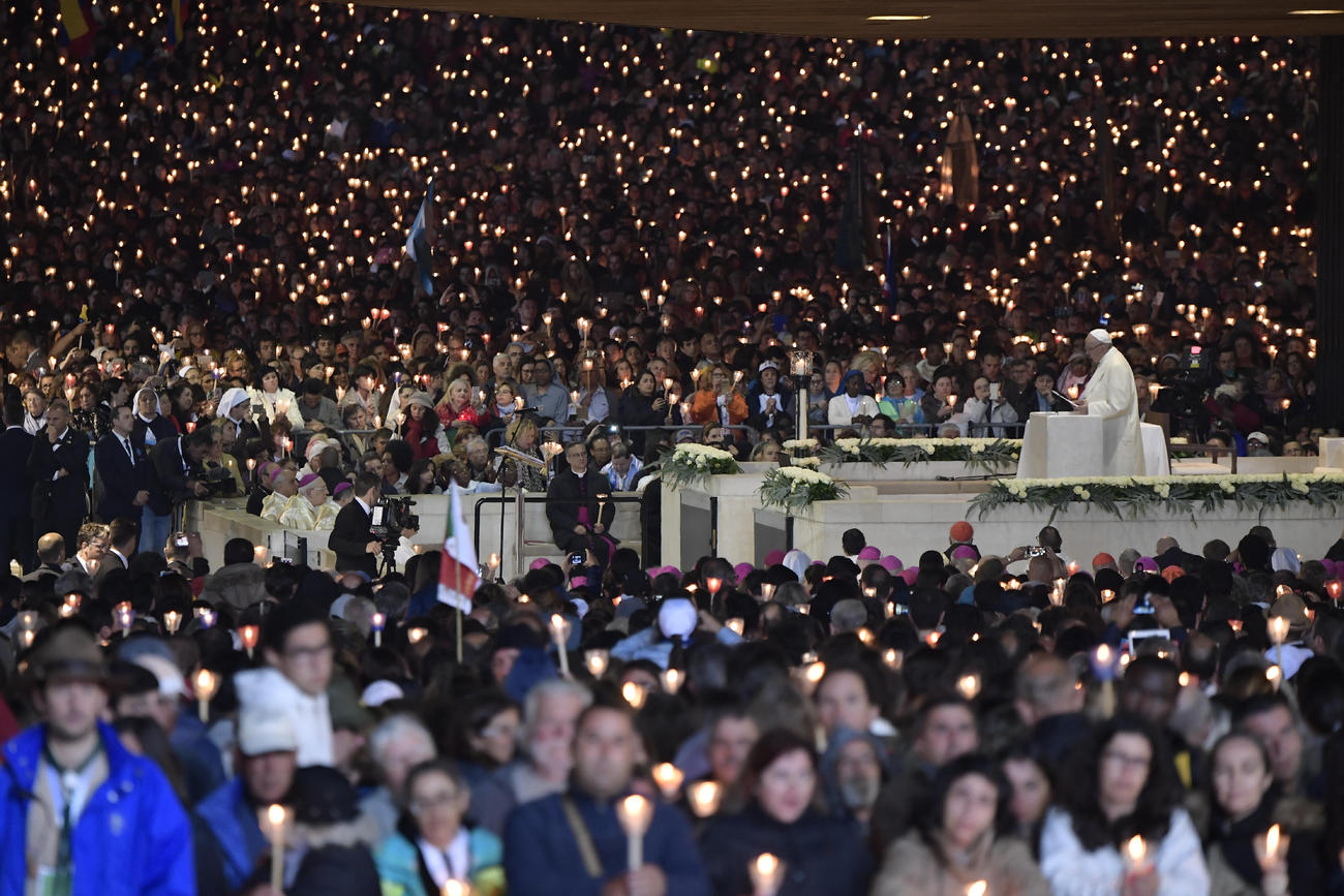 Fatima è un manto di luce, quello della “Signora”, che avvolge tutti, nessuno escluso, perché nessuno dei suoi figli si perda. Francesco affida alla Madonna di Fatima, in particolare, i malati e i disabili, i detenuti e i disoccupati, i poveri e gli abbandonati. E cita una lettera di suor Lucia, traduzione di una visione di Giacinta che sembra evocare perfettamente questa giornata di maggio. “Non vedi tante strade, tanti sentieri e campi pieni di persone che piangono per la fame e non hanno niente da mangiare? E il Santo Padre in una chiesa, davanti al Cuore Immacolato di Maria, in preghiera? E tanta gente in preghiera con lui?”.