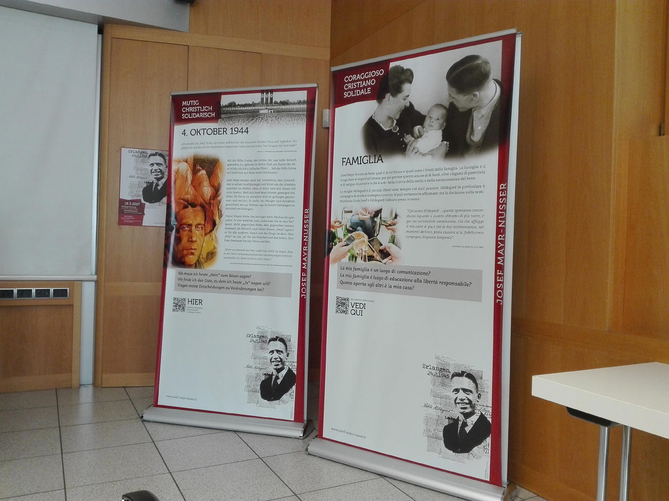 Per diffondere il messaggio di impegno e di speranza legato alla storia di Mayr-Nusser è stata ideata una mostra in dieci pannelli dal titolo “Coraggioso, cristiano, solidale”.