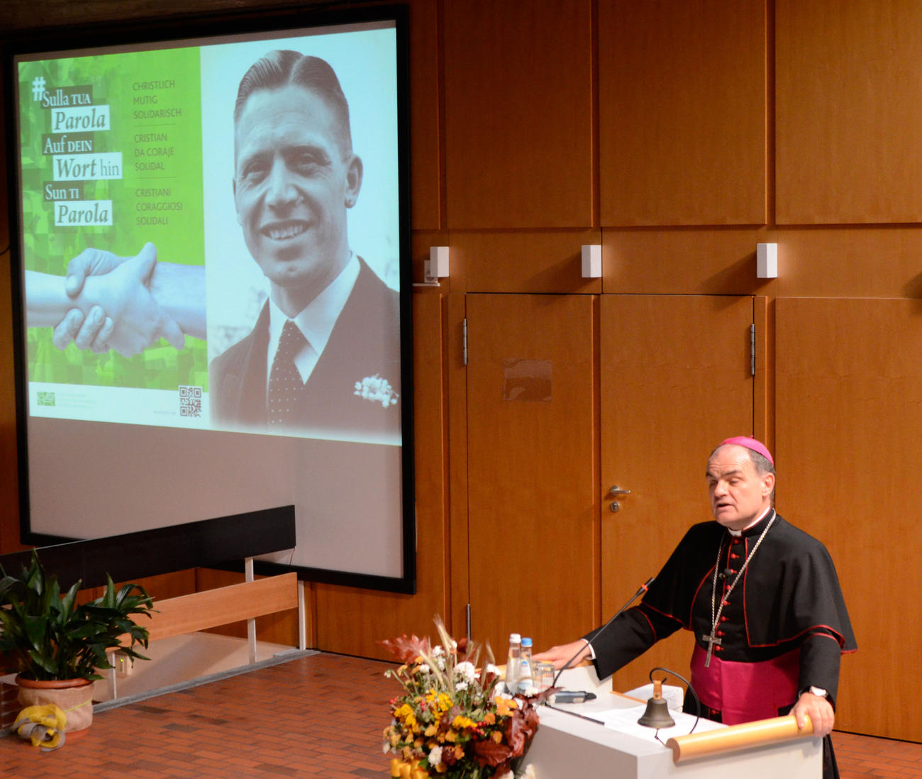 Bressanone – “Dare testimonianza oggi è la nostra unica arma efficace”. Si è aperto con le parole di Josef Mayr-Nusser l’intervento del vescovo Ivo Muser che ha concluso il Convegno pastorale di inizio anno, tenutosi lunedì e martedì presso l’accademia Cusano di Bressanone. Dobbiamo “considerare la testimonianza del nuovo beato – dice il vescovo – come fonte di ispirazione per il nostro essere cristiani, ma anche per il cammino della nostra diocesi”. Ecco dunque il titolo del tema annuale: “Sulla tua Parola: cristiani, coraggiosi, solidali”. La prima indicazione pratica è proprio quella di dare spazio, nelle comunità, allo studio e all’ascolto della Parola: “Ringrazio tutti coloro che guidano e offrono incontri biblici, di approfondimento della Parola – anche in piccoli gruppi che però si incontrano regolarmente”.