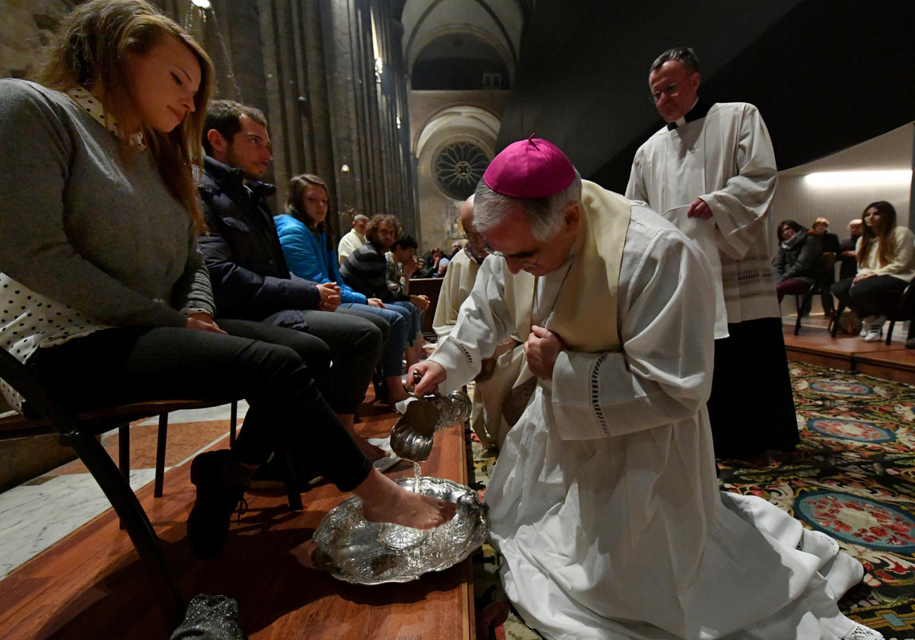 I discepoli quest’anno in Cattedrale avevano il volto di dodici giovani delle parrocchie cittadine nella lavanda dei piedi che si è rinnovata nella Messa In coena Domini, a ricordo dell’ultima cena di Gesù e dell’istituzione dell’Eucarestia. Una scelta che il vescovo ha riferito non solo all’appuntamento del Sinodo sui giovani ma anche ai frequenti incontri con “Passi di Vangelo”.