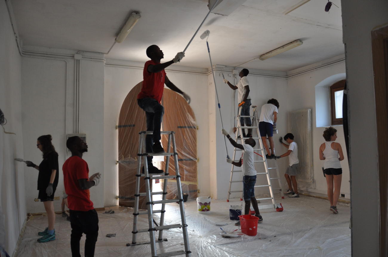 Nello spirito della proposta di “E!State Liberi”, che ogni estate ripopola i beni confiscati alla mafia in tutta Italia, ogni giornata del campo è stata un’occasione di formazione, attraverso incontri con esperti e testimonianze, ma anche di servizio. E a sporcarsi le mani insieme ai partecipanti al campo c'erano anche alcuni coetanei richiedenti asilo accolti nelle strutture trentine; il ritrovo era a Casa San Francesco, a Spini di Gardolo, con vestiti da lavoro, scope, rulli e pennelli. Nelle mattinate di lavoro, i giovani hanno ordinato, ripulito e ritinteggiato alcuni spazi della struttura dei padri cappuccini, gestita da qualche mese dal Centro Astalli, in cui convivono studenti universitari e richiedenti asilo.