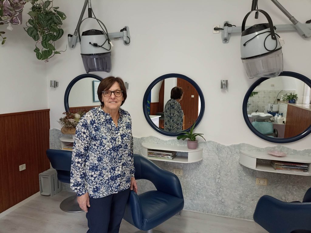 “Non mi accorgo ancora di aver smesso di lavorare – confessa Annamaria Beber, che ha preso la licenza di parrucchiera nel novembre 1972, all’età di 18 anni – perché devo ancora sgomberare e chiudere tutte le pratiche”.