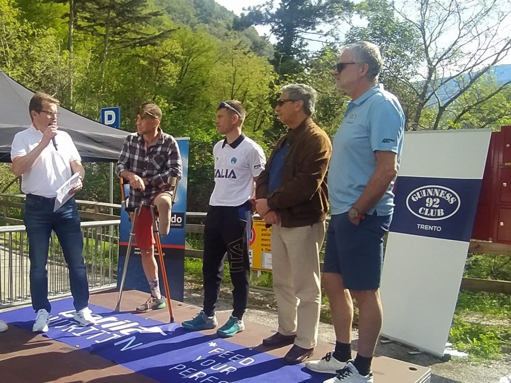 Per fare gli 8.960 metri del monte Everest ci vogliono 14 volte i 640 metri della salita tra la stazione a valle e a monte della Funivia di Mezzocorona: 14 ascese terminate domenica 7 aprile dal paratleta trentino Alessandro Colombo, che ha così concluso felicemente il tentativo di Everesting Challenge. Un’impresa seguita dal Guinness Club 92 Trento – con il presidente Giovanni Groff e lo staff composto da Livio Guidolin, Liberio Furlini e Gianni Peder – e da Olympia Sport Media 2026 Trentino – Alto Adige Sud Tirol che riunisce i 70 giornalisti olimpici del Trentino Alto Adige. Ad accogliere Colombo vi erano il medico chirurgo altoatesino Alexander Gardetto (che lo ha operato alla Clinica Brixsana di Bressanone), il prof. Giulio Sergio Roi (Università di Bologna medicina dello Sport e dell’esercizio fisico) che ha lo ha seguito durante tutta l’impresa, Mattia Hauser Sindaco di Mezzocorona con l’assessore Matteo Permer, Massimo Bernardoni presidente del Comitato italiano paraolimpico del Trentino Alto Adige e Daniele Cappelletti che già detiene il record assoluto dell’Everesting messo a segno proprio a Mezzocorona il 19-20 ottobre 2020 con 21.720 metri di dislivello superati nell’arco delle 24 Ora.