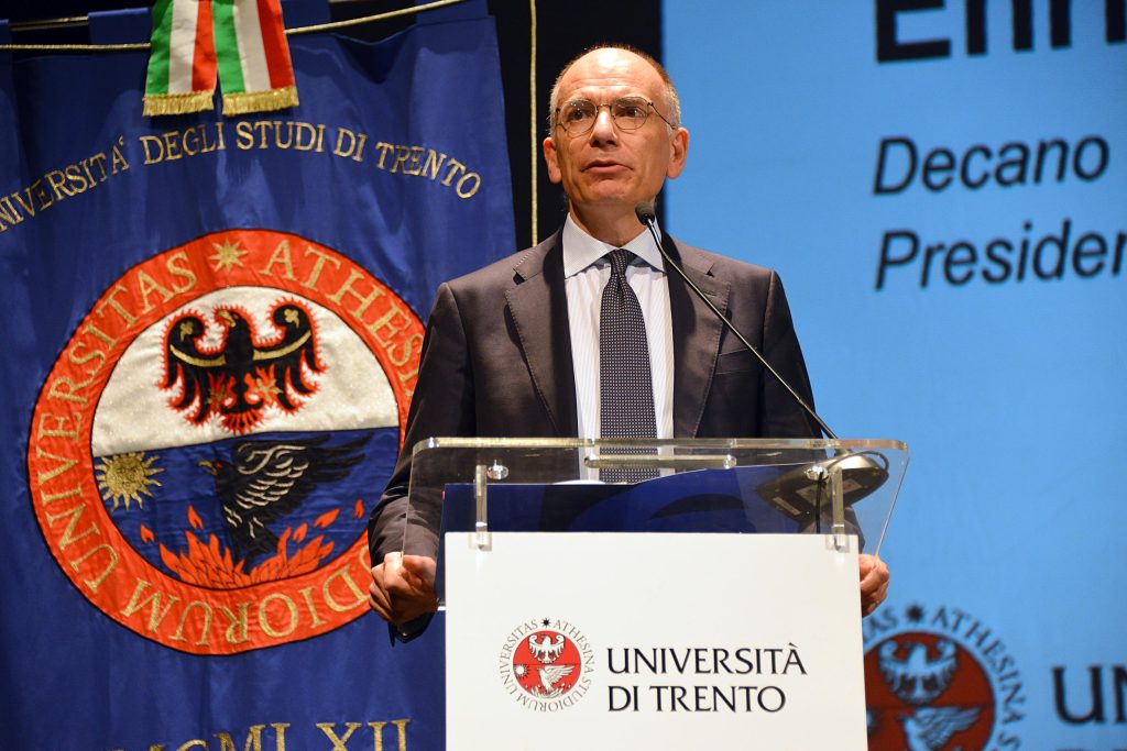 La quinta libertà del mercato unico, dopo beni, servizi, capitali e persone, è quella dell’innovazione e della conoscenza, sempre più cruciale nel mondo attuale. Una libertà che sarà “la chiave dei prossimi cinque anni” per l’Unione Europea. Lo ha affermato Enrico Letta, ex presidente del Consiglio italiano e presidente dell’Istituto Jacques Delors, ospite d’eccezione dell’inaugurazione dell’anno accademico 2024/2025 dell’Università di Trento, che si è svolta martedì 26 novembre al Teatro Sociale. “L’università – ha esordito Letta – gioca un ruolo fondamentale per un motivo molto semplice. Ciò che oggi ci fa essere più in ritardo rispetto agli Stati Uniti e alla Cina è l’investimento in ricerca, conoscenza, innovazione. Siamo indietro per tanti motivi, per la frammentazione del nostro sistema, perché gli investimenti privati sono troppo frammentati. Su temi come l’intelligenza artificiale, americani e cinesi vincono perché hanno grandissime capacità di investimento. Basta vedere cosa fa sullo spazio Elon Musk con investimenti privati. Noi in Europa purtroppo siamo divisi in 27 su questi temi e non siamo in grado di reggere”.