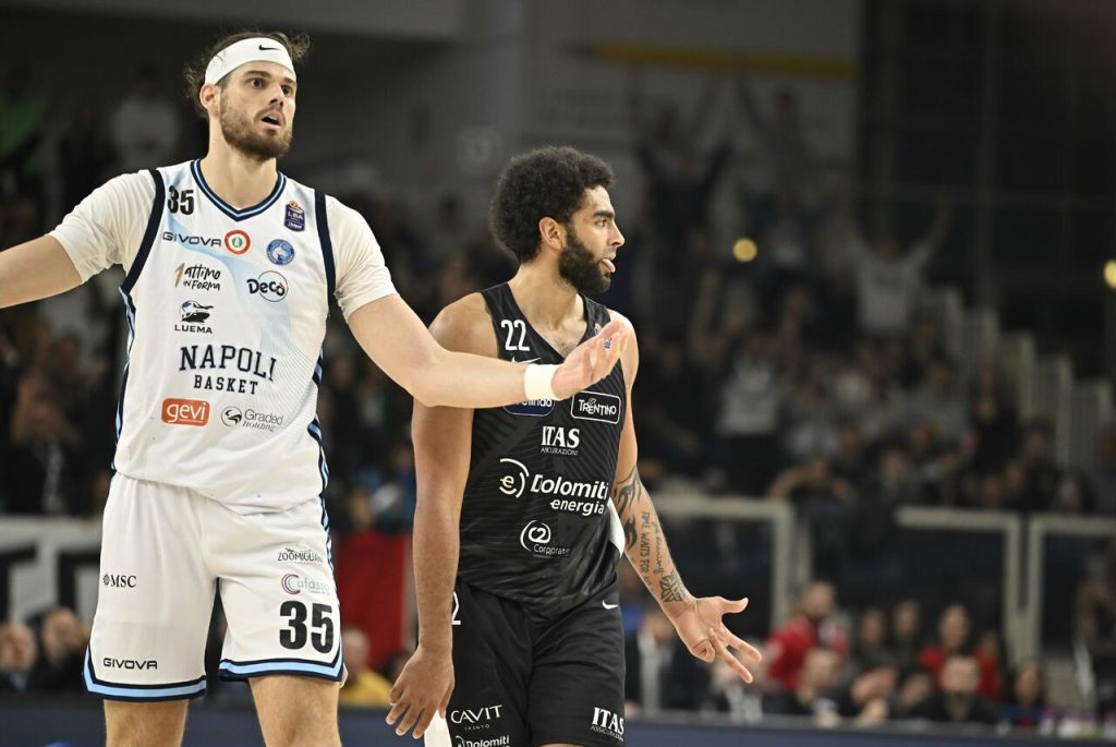 Bentil apre l’ultimo quarto con il canestro del pareggio, ma Lamb risponde immediatamente, cattura il rimbalzo difensivo e serve Cale con metri di spazio, che piazza la tripla per il 66-61. Žukauskas infiamma il PalaTrento con una bomba dall’arco, e nonostante il canestro di Totè, Cale e Ford trovano due giocate da “and one” consecutive, allungando sul 75-63. Napoli prova a reagire: Woldetensae segna una tripla impossibile allo scadere su un’ottima difesa bianconera, mentre Totè schiaccia un alley-oop perfettamente servito da Pangos. Bentil accorcia ancora, ma Trento non cede: Cale schiaccia con autorità, costringendo coach Valli a chiamare timeout sull’82-71 a 4 minuti dalla fine. Copeland risponde con un “and one”, e Woldetensae realizza un’altra tripla difficilissima, riportando Napoli a -4. Lamb, però, con freddezza piazza una tripla sul pick & pop orchestrato da Quinn Ellis. Nonostante i tentativi di resistenza di Napoli, è proprio Ellis a mettere a segno un canestro fondamentale per chiudere i giochi. Trento si impone con il punteggio di 90-83, conquistando un’altra vittoria di carattere.