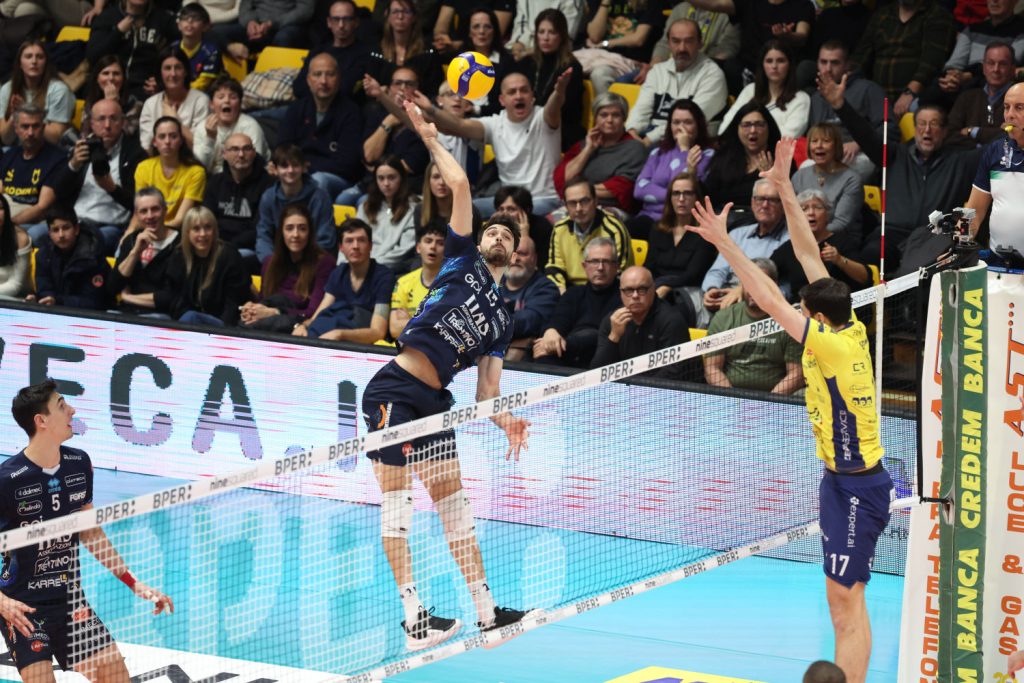 La cronaca. L’Itas Trentino si presenta in Emilia ancora priva di Kozamernik; l’allenatore Fabio Soli conferma quindi lo starting six che prevede anche Sbertoli in regia, Rychlicki opposto, Michieletto e Lavia schiacciatori, Bartha e Flavio centrali e Laurenzano libero. La Valsa Group Modena risponde con De Cecco al palleggio, Buchegger opposto, Davyskiba e Rinaldi in banda, Mati e Sanguinetti al centro, Federici libero. L’avvio di match è molto equilibrato, con i padroni di casa che provano subito a scappare (2-4), ma vengono immediatamente ripresi dagli ospiti che tengono bene il campo specialmente in fase di cambiopalla (9-9). Un attacco out di Michieletto offre il nuovo +2 interno (9-11), poi Rinaldi sbaglia a sua volta consegnando la parità a quota 12; il nuovo strappo emiliano arriva con Buchegger al servizio (12-15), situazione che costringe Soli a spendere un time out. Alla ripresa Trento lotta ma sembra non riuscire più a riavvicinarsi (17-19 e 19-22), anche perché i gialloblù faticano a mettere il pallone a terra in posto 4. Un ace di Bartha ed il successivo contrattacco di Lavia ricostruiscono invece la parità a quota 22, ma è un equilibrio precario, perché poi Buchegger realizza il 23-25 alla prima occasione utile per la Valsa Group.