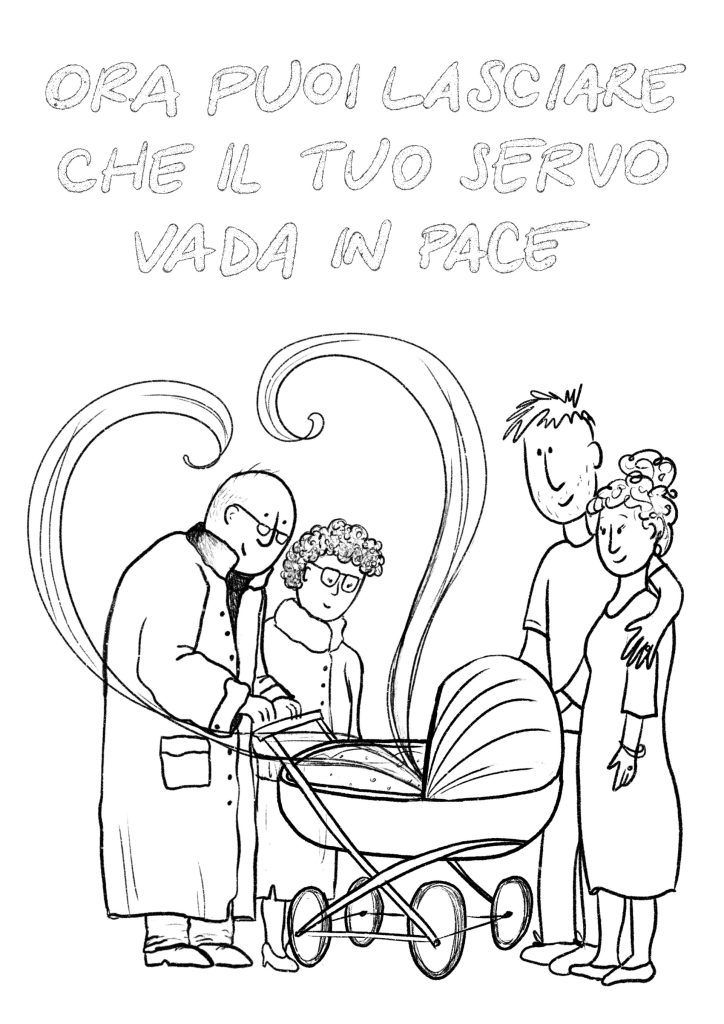 Pensando a Simeone ed Anna nel tempio, non credo di essermi sbagliata di molto ad averli disegnati come due bisnonni di oggi, chini ad ascoltare i vagiti d’amore che provengono da una carrozzina. Perché, anche se i tempi cambiano, quella contemplazione che accade attorno ad un neonato scavalca tempo e spazio ed accomuna i cuori degli esseri umani. Davanti ad...