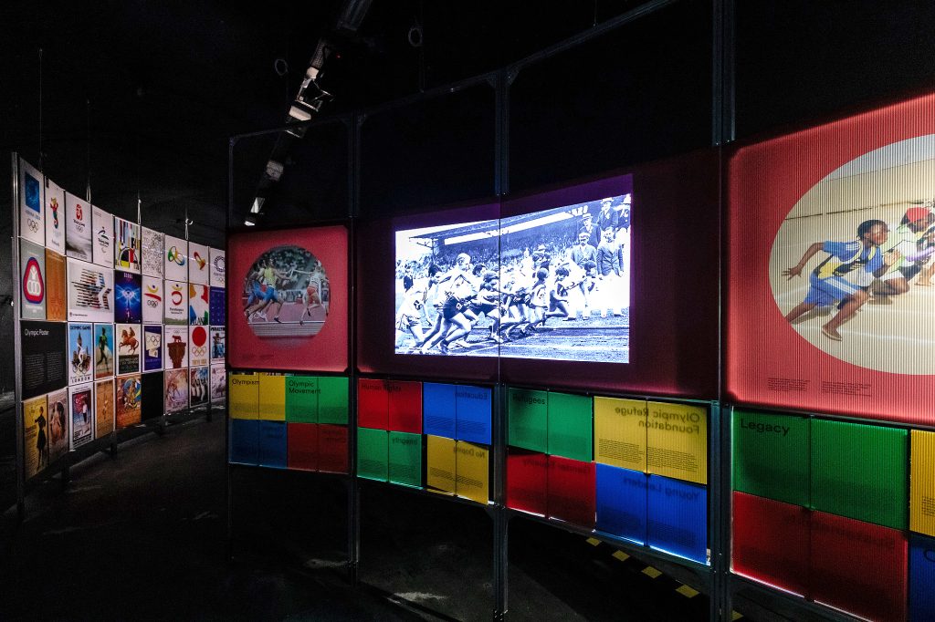 Manifesti, fotografie, video, servizi giornalistici televisivi caratterizzano l’esposizione ma, soprattutto, sono presenti sette storie con altrettanti testimoni, atleti del presente e del passato, che ben rappresentano, raccontando, i tanti cambiamenti degli ultimi decenni, dallo sci sciancrato al palo snodato (non di legno ma che adesso, invece che aggirato, viene in pratica abbattuto nella discesa), dalla battitura delle piste con il gatto delle nevi alla tecnologia del bob, dalle protesi per correre fino alle piste da atletica. Quindi, Thoeni, il falegname Giuliano Boninsegna, l’ex azzurra di sci alpino Dody Nicolussi, Enzo Macor, sport manager dello sci di fondo per le Olimpiadi invernali, l’ex bobista Pasquale Gesuito, Giuliana Chiara Filippi, atleta paralimpica e il campione olimpico di maratona, nel 2004 ad Atene, Stefano Baldini.