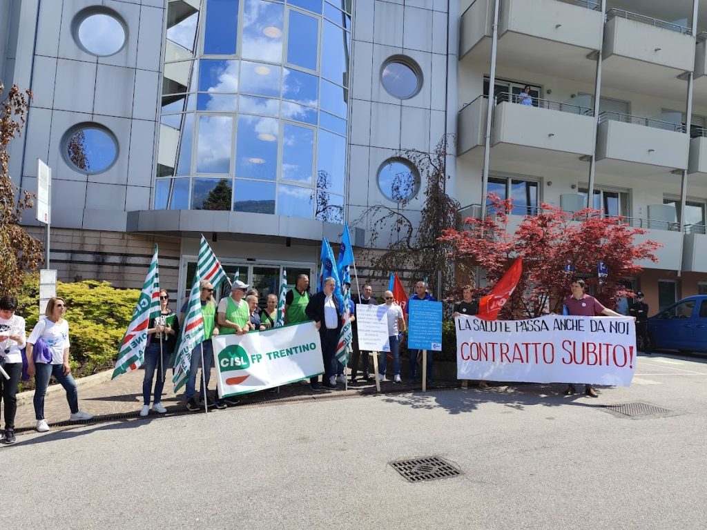 Sono un migliaio in Trentino le lavoratrici e i lavoratori della sanità privata accreditata senza contratto. Gli accordi siglati da Aris (associazione istituti religiosi socio sanitari) – Aiop (associazione italiana ospedaliera privata) e Cdr (centri di riabilitazione) sono scaduti rispettivamente da 6 e 13 anni. Nella mattinata di oggi, mercoledì 30 aprile, i lavoratori hanno protestato nel piazzale antistante la casa di cura Solatrix di Rovereto per chiedere il rinnovo del contratto e una decisa presa di posizione della Provincia di Trento.