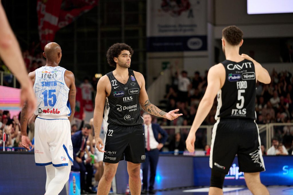 Smith apre l’ultima frazione con due liberi a bersaglio, ma Cale risponde subito “from downtown” con una tripla che infiamma il palazzetto. Uglietti replica immediatamente, poi Ellis segna in reverse, ma ancora Uglietti tiene vivi i suoi. Pecchia è preciso dalla lunetta (2/2), Ellis si prende spazio e segna dalla media per il nuovo +18. Cheatham prova a scuotere Reggio con un bel canestro in palleggio, arresto e tiro, ma Myles Cale risponde con una poderosa schiacciata per il 75-57, costringendo coach Priftis al timeout. Al rientro, Vitali taglia in backdoor e appoggia due punti, ma Ford replica subito e poi serve Mawugbe per l’alley-oop chiuso con una schiacciata a due mani per l’80-62. Nel finale, Trento gestisce il vantaggio con grande maturità e chiude la partita sull’84-63, conquistando una vittoria fondamentale per raggiungere le prime quattro posizioni.