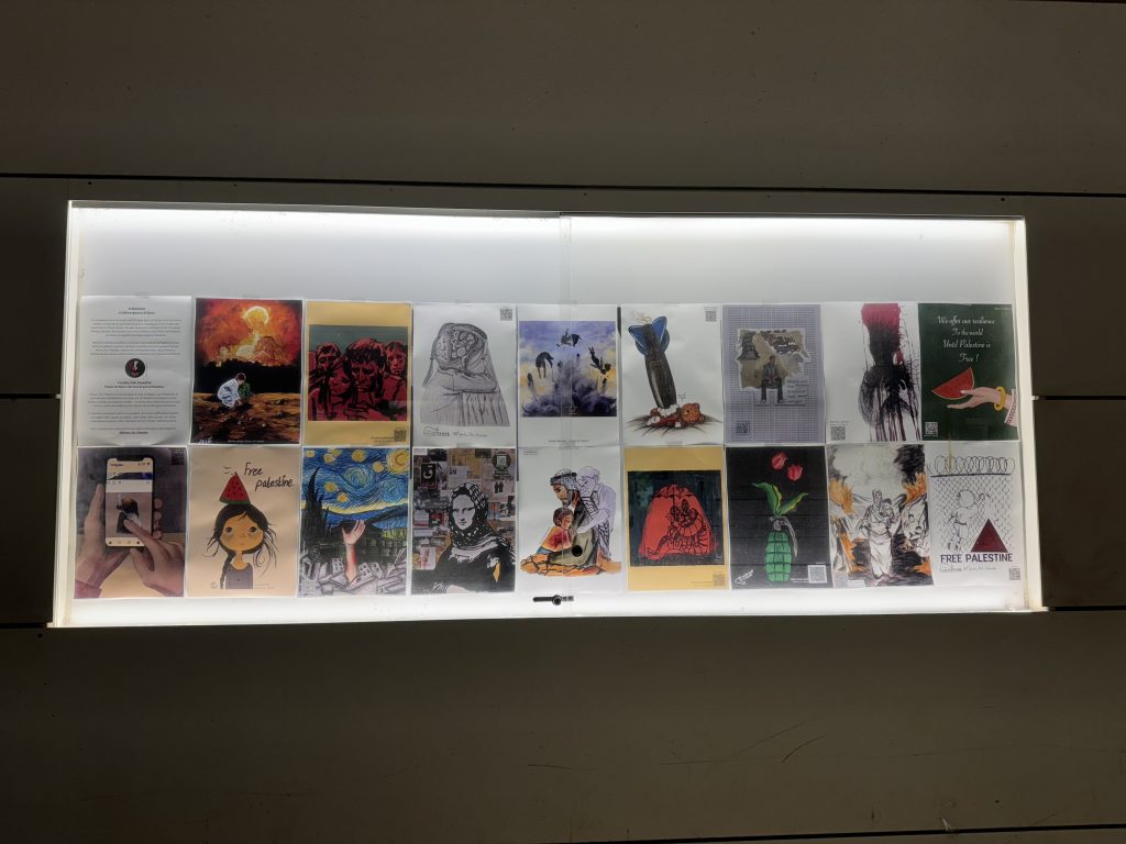 Le opere esposte da Oriente Occidente sono parte del progetto Flyers_for_Falastin, una campagna di affissione avviata da quattro amici in Belgio che hanno voluto lanciare l’iniziativa per invitare le persone a una concreta solidarietà con la Palestina attraverso l’arte. Artisti e artiste hanno messo a disposizione gratuitamente i loro lavori, scaricabili e stampabili liberamente: un invito a riempire strade, piazze, scuole e centri culturali di immagini che diano voce al popolo palestinese.