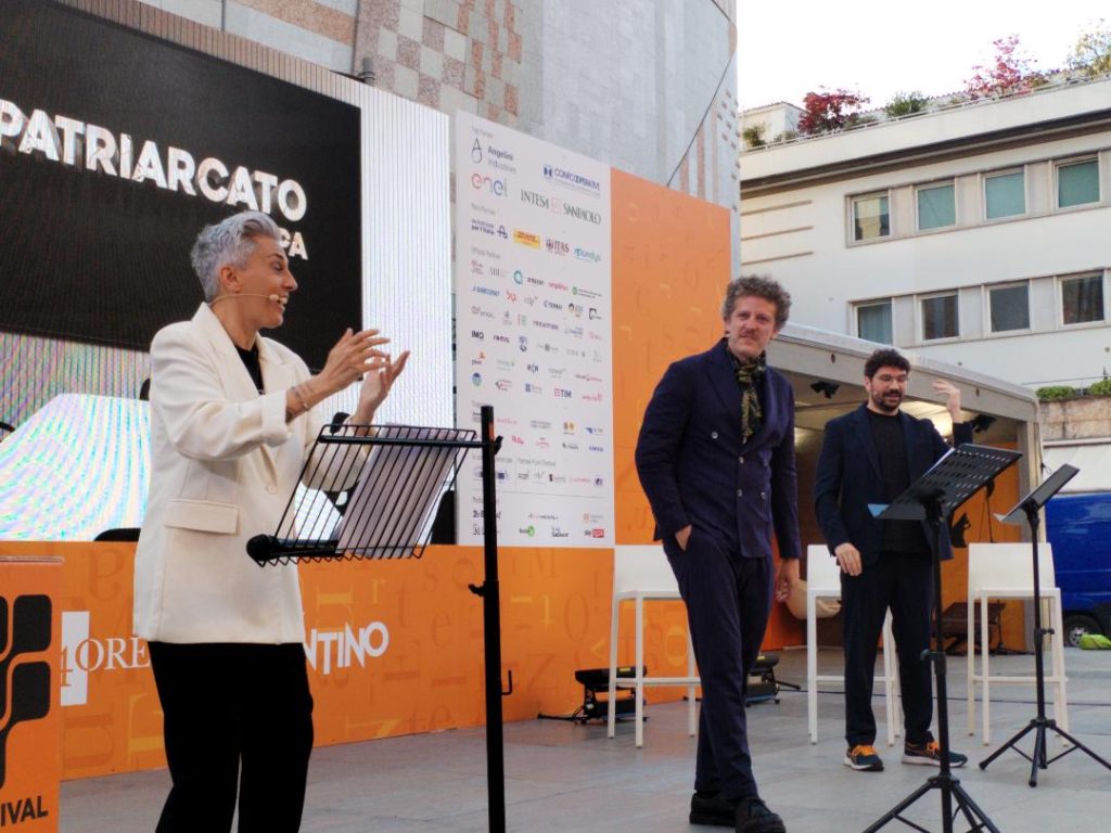 In piazza Cesare Battisti, a Trento, durante il Festival dell’Economia è andato in scena un siparietto in cui Poli e Salmetti rappresentavano i promotori di “Patriarcato spa”, mentre La Torre era l’amministratrice delegata di “Femminismo ss”.