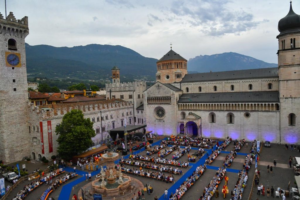 “La Ganzega ha lo straordinario potere di unire la piazza alla tavola, due elementi altamente simbolici”, ha affermato il sindaco di Trento Franco Ianeselli. “La piazza della cattedrale, della torre civica e del mercato è tipica delle città europee: è un punto di incontro, di scambio, di relazione. E la tavola imbandita è l’emblema della condivisione e insieme della convivialità. Che poi a preparare questa cena siano stati quasi duecento volontari dimostra che a Trento lo spirito di gratuità, quando è ben incanalato e organizzato, riesce a smuovere le montagne. Grazie volontari per aver reso visibili, con un allestimento davvero straordinario, i legami comunitari che ci tengono insieme”.