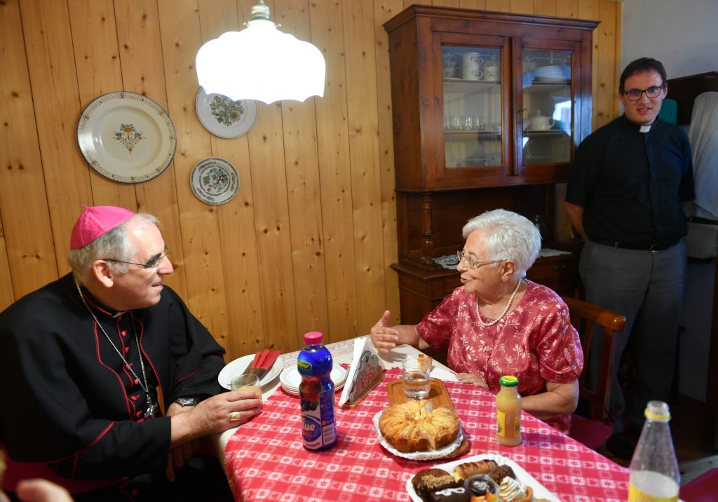 Maria Emmaus Voce con il vescovo Tisi e il parroco don Nicola Belli nel 2019 a Tonadico nell’inaugurazione della via dedicata in Primiero a Chiara Lubich, a 70 anni dalla prima Mariapoli. (foto Gianni Zotta)