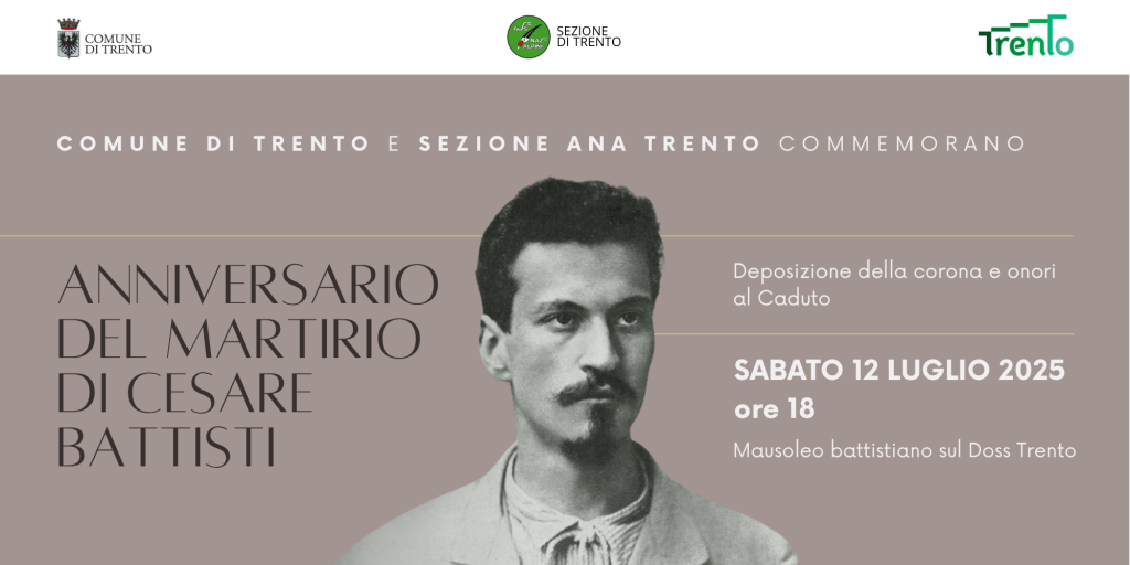 Sarà celebrato sabato 12 luglio al Mausoleo battistiano, sul Doss Trento, l’anniversario del martirio di Cesare Battisti.