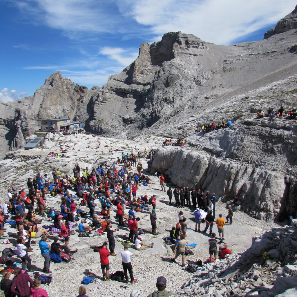 Un luogo di culto e riflessione che anche quest’anno, domenica 27 luglio,  vedrà salire ai XII Apostoli centinaia di alpinisti per rendere omaggio ai caduti della montagna. Si tratta di un vero e proprio pellegrinaggio che ha come protagonisti i cantori del Coro della Sosat, che da sempre partecipano a questo evento accompagnando, con i canti liturgici e paraliturgici il rito eucaristico, celebrato non più nella chiesetta, per via della grande partecipazione, ma sulle balze rocciose fra il rifugio e la base della cima XII Apostoli. La Messa verrà celebrata alle 11 da Don Giorgio Dall’Oglio, sacerdote mantovano che sale da ben 47 anni per celebrare il rito eucaristico.