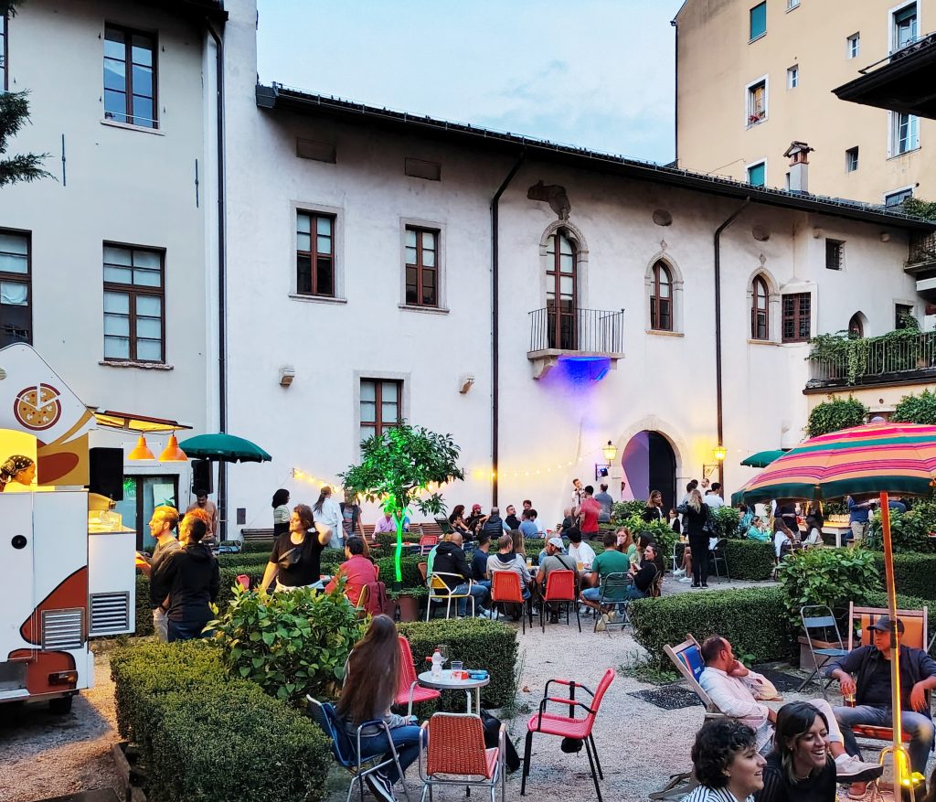 Ad aprire la serata, un aperitivo con dj-set ispirato al midwest groove a cura di Stefano Bordi. Il percorso di Inchiostro si snoda a partire dall’ingresso in via delle Orfane, che conduce allo splendido Giardino dei Poeti, fino a raggiungere il cortile di Palazzo Geremia, dove si trova il palco principale. Uno spazio continuo e senza interruzioni, pensato per offrire un’esperienza immersiva tra suoni, luci, arredi curati e una proposta enogastronomica selezionata.