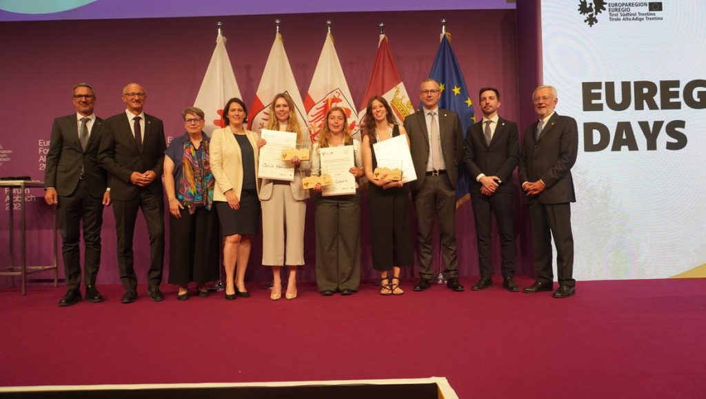 I riconoscimenti, assegnati dalle Camere di commercio dei tre territori, sono stati consegnati dalla presidente della Camera di commercio del Tirolo Barbara Thaler, dal presidente della Camera di commercio di Bolzano Michl Ebner e dal presidente della Camera di commercio di Trento Andrea De Zordo, alla presenza del presidente della Provincia autonoma di Bolzano e dell’Euregio Arno Kompatscher, dell’assessore alla promozione della conoscenza dell’Autonomia della Provincia autonoma di Trento Simone Marchiori e del capitano del Tirolo Anton Mattle.