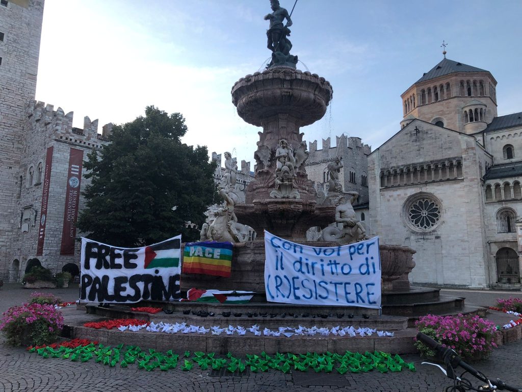 Domenica 7 settembre l’alba sulla Fontana del Nettuno di piazza Duomo, a Trento, ha illuminato una lunga fila di barchette di carta bianche, verdi, rosse e nere. A portarle, alle 6.45 del mattino, sono stati i gruppi scout Agesci Trento 8 e Trento 4, che hanno così voluto accendere i riflettori sulla Global Sumud Flotilla attraverso un’azione simbolica.