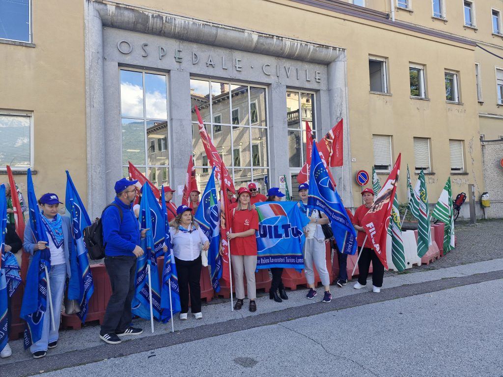 Gli spazi, infatti, resteranno inutilizzabili per almeno sette mesi e per questa ragione stamattina hanno deciso di riunirsi in assemblea fuori dal Santa Maria del Carmine. “Di fatto in via ufficiale nessuno ha comunicato nulla né a noi sindacati né alle trenta lavoratrici coinvolte – sottolineano con rammarico Carla Tatti, Gabriele Goller e Stefano Picchetti rispettivamente di Filcams, Fisascat e Uiltucs -. Le nostre richieste di informazioni sono cadute nel vuoto. Silenzio da Dussmann, la società che gestisce l’appalto, e un totale scarica barile da parte dell’Azienda sanitaria che si limita ad affermare che è un appalto di servizio e in quanto tale risponde chi è titolare dell’affidamento. Il risultato è che noi abbiamo appreso della chiusura dai giornali e da voci di corridoio. Qui c’è in ballo la vita di trenta famiglie”.