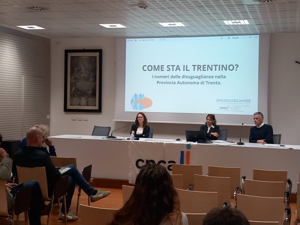 Come sta il Trentino? È la domanda che si è posto il Cnca Trentino Alto Adige – Coordinamento Nazionale Comunità Accoglienti, tastando il polso della società trentina attraverso l’osservatorio delle realtà che si occupano di accoglienza. Lo ha richiamato questa mattina (venerdì 26 settembre) presso il polo culturale Vigilianum a Trento il presidente del Cnca Trentino Alto Adige, Claudio Bassetti, introducendo l’incontro sui numeri delle disuguaglianze nella Provincia Autonoma di Trento, promosso nell’ambito della 11esima edizione della Settimana dell’Accoglienza, che fino a sabato 4 ottobre propone una serie di eventi sul territorio delle Province di Bolzano e di Trento. “La questione delle disuguaglianze è cruciale in una società che voglia definirsi equa”, ha osservato, richiamando l’esigenza di costruire “una cultura dell’equità”.