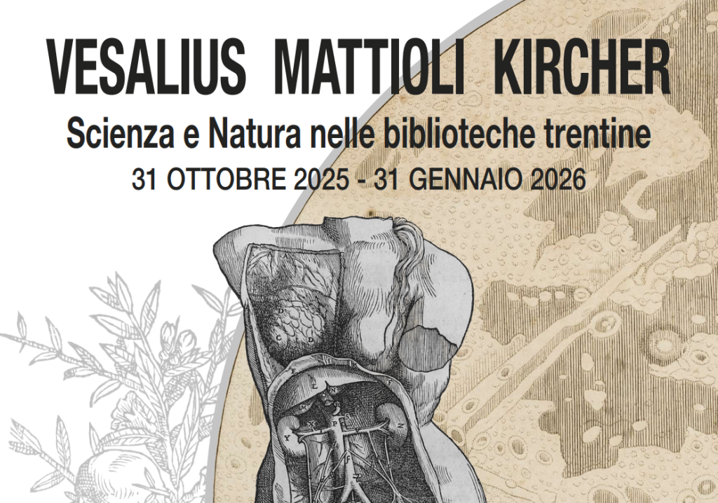 La mostra si intitola “Vesalius, Mattioli, Kircher. Scienza e Natura nelle biblioteche trentine”. Un’occasione per conoscere il legame tra indagine scientifica e illustrazione artistica e possibili collegamenti con problematiche attuali. Hanno collaborato al progetto la Biblioteca Diocesana Vigilianum di Trento, la Biblioteca “Gino Tomasi” del Muse, la Biblioteca Civica “G. Tartarotti” di Rovereto e la Fondazione Biblioteca San Bernardino di Trento. I quattro enti hanno fornito le stampe che sono state scansionate e saranno poi esposte. Le fotografie sono state invece realizzate da Paolo Chistè. L’iniziativa è parte dell’evento “Rigenerazioni: scenari antichi per un nuovo antropocene” realizzato dal progetto Officina Espositiva del Dipartimento di Lettere e Filosofia dell’Università di Trento in collaborazione con il Muse di Trento. La mostra è allestita nell’atrio nord di Palazzo Prodi (Trento – Via Tommaso Gar, 14) e resta aperta fino al prossimo 31 gennaio.