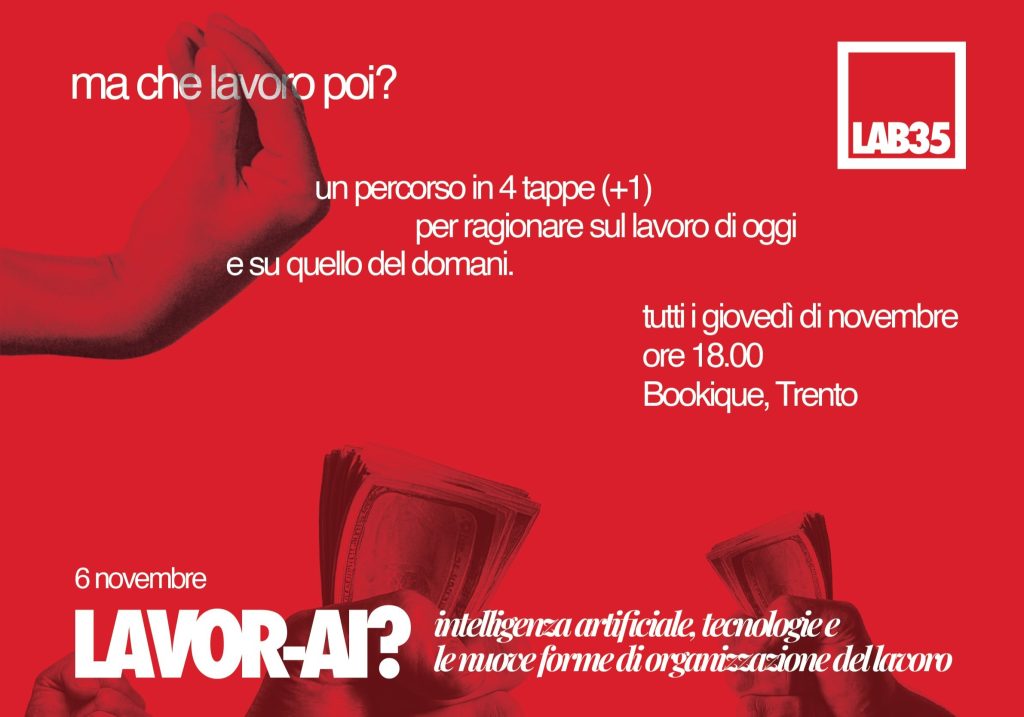 Si intitola “Ma che lavoro poi?“, il ciclo di quattro incontri per ragionare sul lavoro di oggi e di domani organizzato dal gruppo Under 35 della Cgil, che prenderà vita alla Bookique di Trento, tutti i giovedì dal 6 al 27 novembre alle 18.
