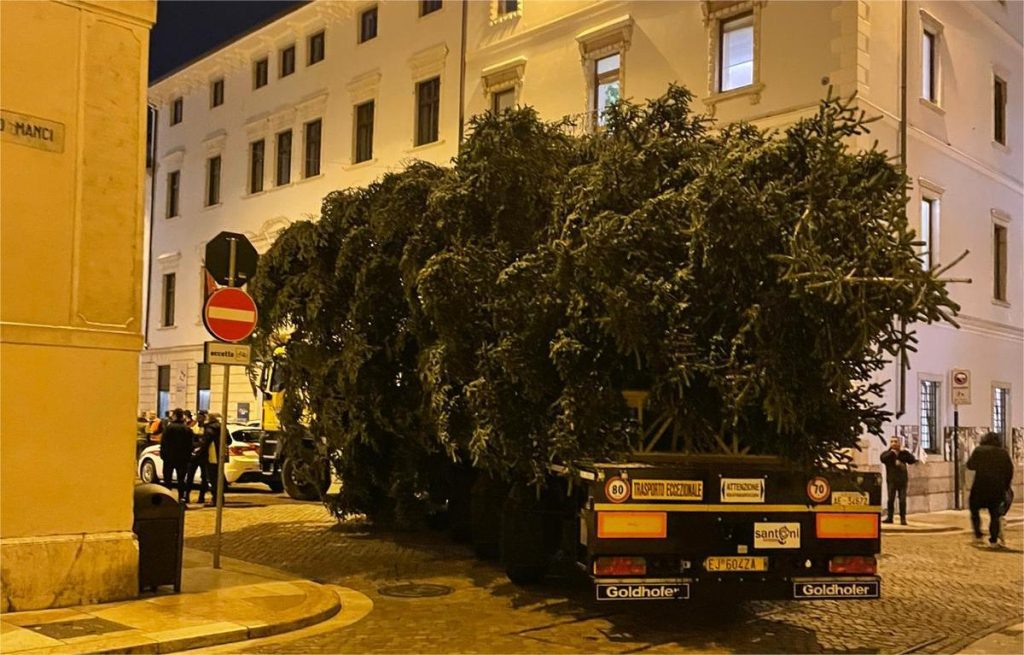 È arrivato stasera dal Monte Bondone, in ritardo rispetto alla tabella di marcia, l’abete bianco che da sabato 22 novembre, giorno dell’inaugurazione di “Trento, città del Natale”, con i suoi sedici metri di altezza illuminerà piazza Duomo, a Trento, durante le festività. A complicare il trasporto, sono state le dimensioni del grande abete, il cui volume ha reso difficoltoso il passaggio sotto alcuni semafori sospesi in località Sopramonte e nella zona del Bus de Vela.