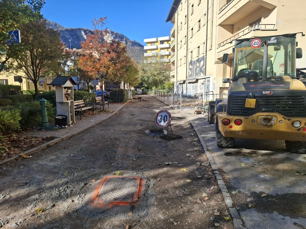 Sono in corso i lavori di rifacimento della ciclabile di via San Pio X che collega la Clarina con il centro, a Trento. Meteo permettendo termineranno venerdì 14 novembre.
