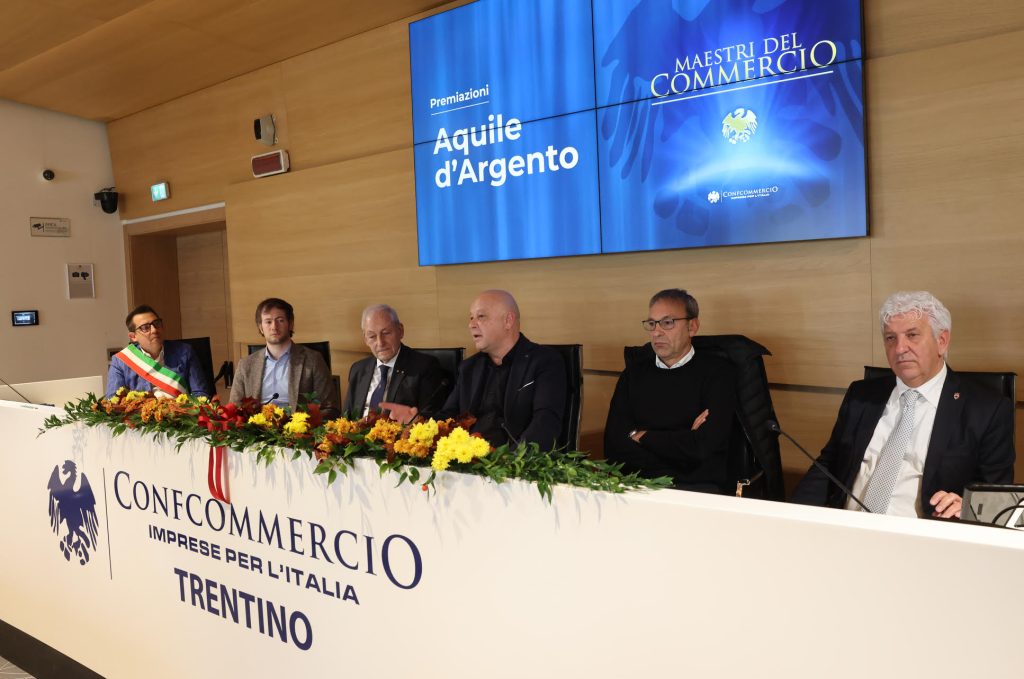 Venticinque imprenditori trentini sono stati premiati sabato 8 novembre nella sala conferenze di Confcommercio Trentino, in occasione della cerimonia dei “Maestri del Commercio 2025”, organizzata da 50&Più Trento per riconoscere il valore, la dedizione e la storia professionale di chi ha dedicato una vita intera al commercio, al turismo e ai servizi.