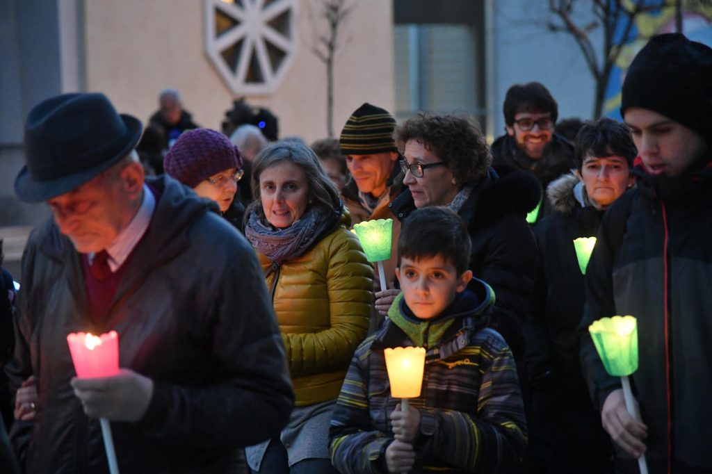 Alle 19.30 partirà una fiaccolata per la pace, che si concluderà presso la chiesa della Sacra Famiglia. Alle 20.00, nella stessa chiesa, sarà celebrata la Santa Messa, presieduta da mons. Lauro Tisi.