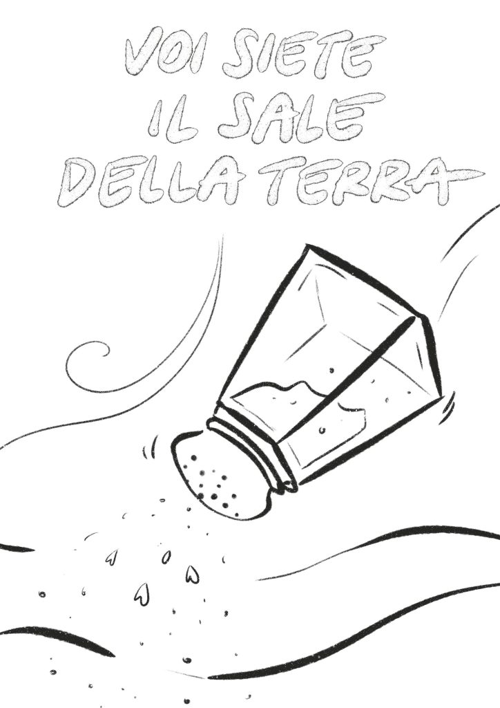 Noi, proprio noi? Come facciamo ad essere il sale? Il sale è fondamentale per esaltare il sapore di tante pietanze: ne basta un pizzico per rendere speciale una ciotola di castagne appena tolte dalla stufa. Il sale ci protegge dalle brutte cadute, sparso a terra sulle strade ghiacciate. Il sale però può anche bruciare: ci accorgiamo della potenza anche di...