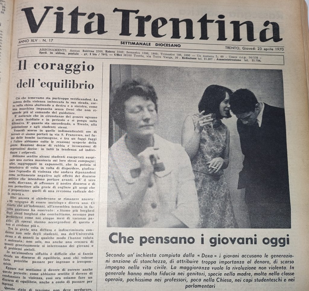 Giovedì 23 aprile 1970 Vita Trentina riporta l’esito degli scontri avvenuti durante l’ultima settimana. Guidate dal Dipartimento di Sociologia insorgono a Trento le prime proteste studentesche.