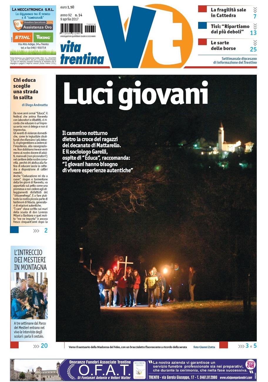 Il cammino notturno dietro la croce dei ragazzi del decanato di Mattarello. E il sociologo Garelli, ospite di “Educa”, raccomanda: “I giovani hanno bisogno di vivere esperienze autentiche”