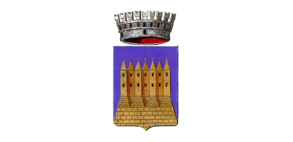 Lo stemma è stato riconosciuto il 3 ottobre 1929 e si rifà alla paraetimologia del toponimo. Ha ottenuto il titolo di Borgata dal vescovo Carlo Emanuele Madruzzo nel 1636. Da secoli ha come emblema, su sfondo azzurro, un castello d’oro a sette torri quadrate, contigue, coperte a cuspide, cimate da sferette, finestrate di rosso, su quattro scarpate fondate su una muraglia movente dalla punta, il tutto d’oro su campo azzurro. Nella carta intestata del Comune appare anche una fascia rossa. Negli ornamenti di Comune non si fa uso di fronde.